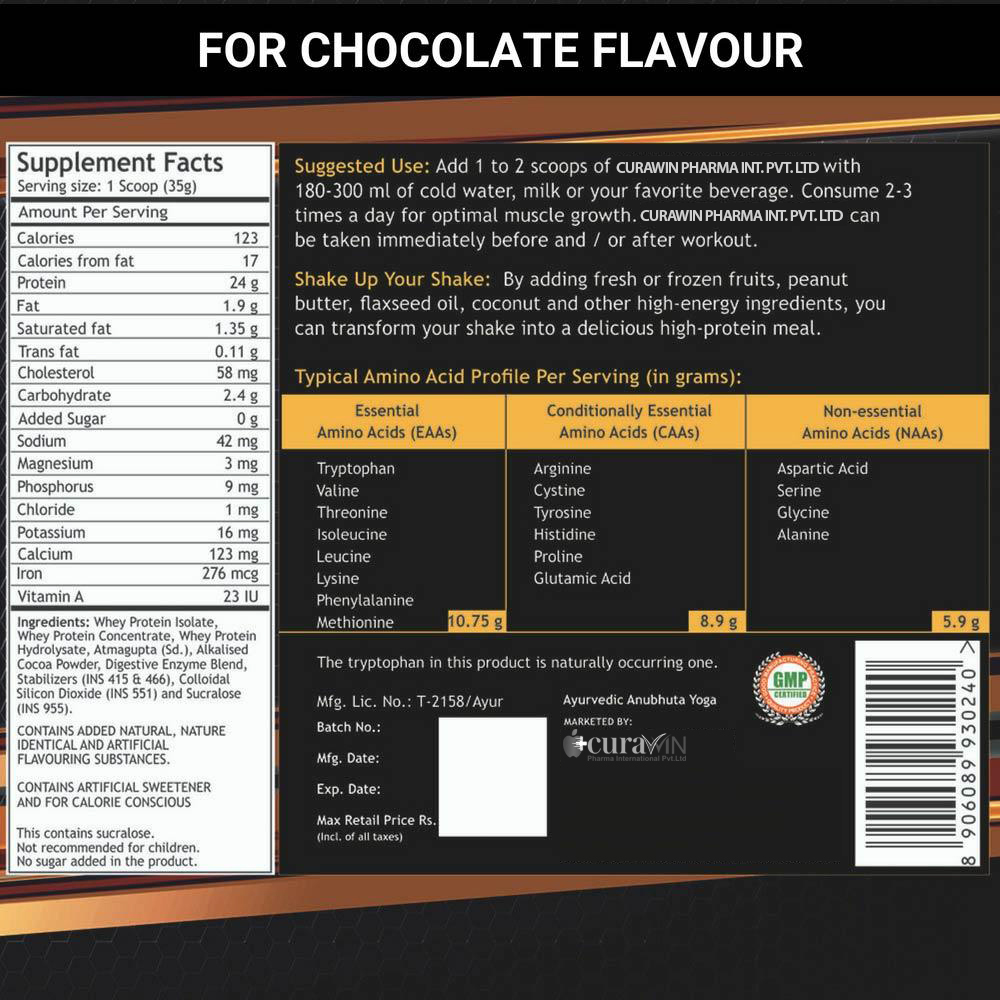 Curawin Whey Protein Powder is available in packs of 400gms,1kg and 2kg and in two delicious flavours that are Chocolate and Vanilla.