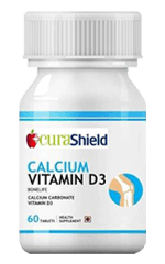 CURASHIELD Calcium D3 supplement contains 500mg of calcium & 400IU of Vitamin D3 in each tablet. Each pack contains 60 tablets.
